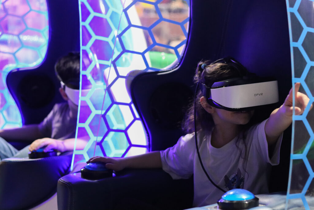 In unserem VR-Erlebnisbereich mit unterschiedlichen, beweglichen Simulatoren tauchen Besucher in völlig neue Welten ein. Die modernen VR-Systeme reagieren auf jede Bewegung und sorgen dafür, dass sich die Erlebnisse täuschend echt anfühlen. Ob rasante Fahrten, Kurven oder Beschleunigungen – hier wird Virtual Reality spürbar.