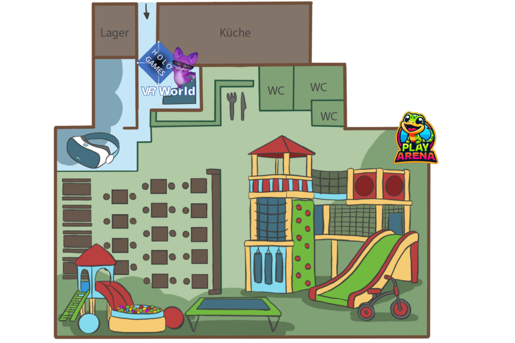 Klicke Dich Durch unsere Spielkarte und entdecke die Vielfalt unserer Attraktionen! Von Klettergerüst und Trampolin – zu VR und Bällebad. Hier findest Du Spiel und Spaß für Groß und Klein!